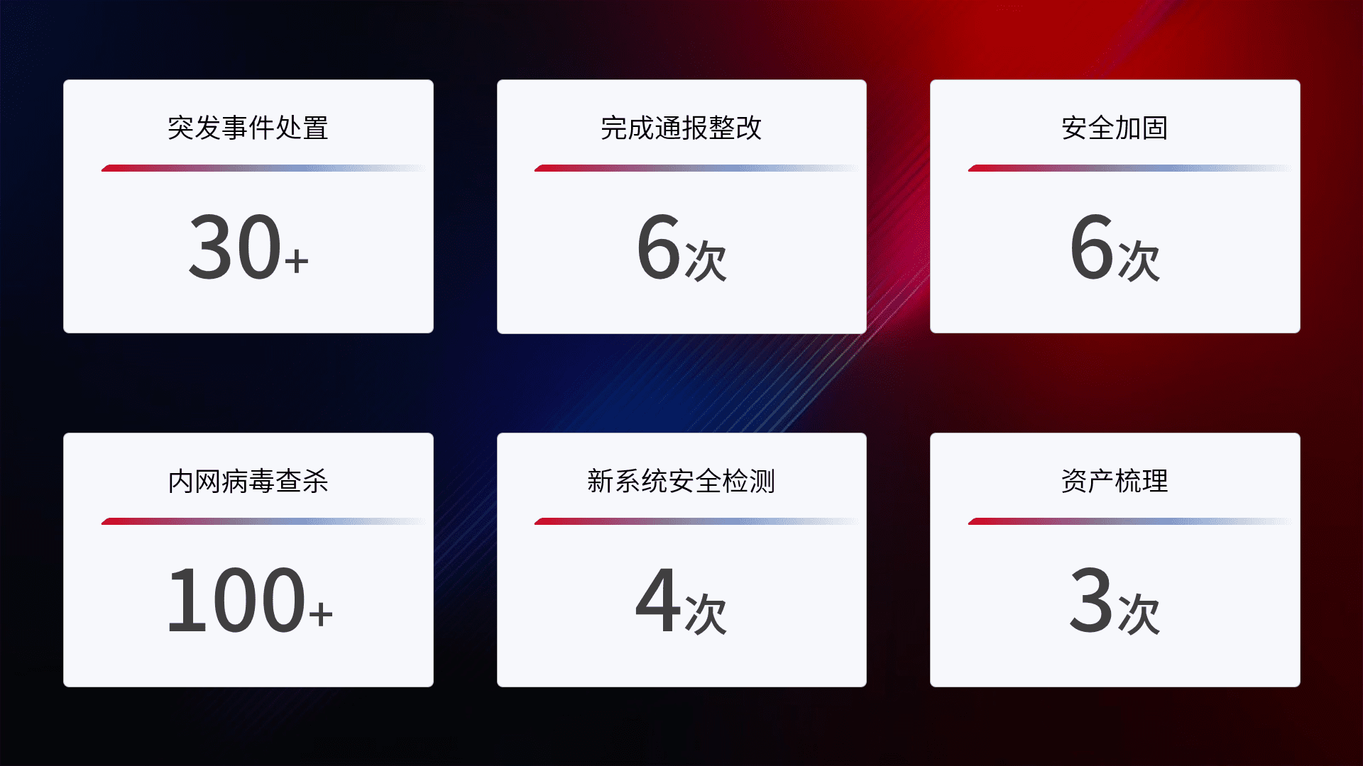 网络安全加固与风险管理:通过技术加固手段,,如加强区域隔离,,,缩减攻击内网横向移动的范围;优化现有网络安全管理制度,,,降低网络威胁暴露面,,,,减少被黑客攻击的可能性。。